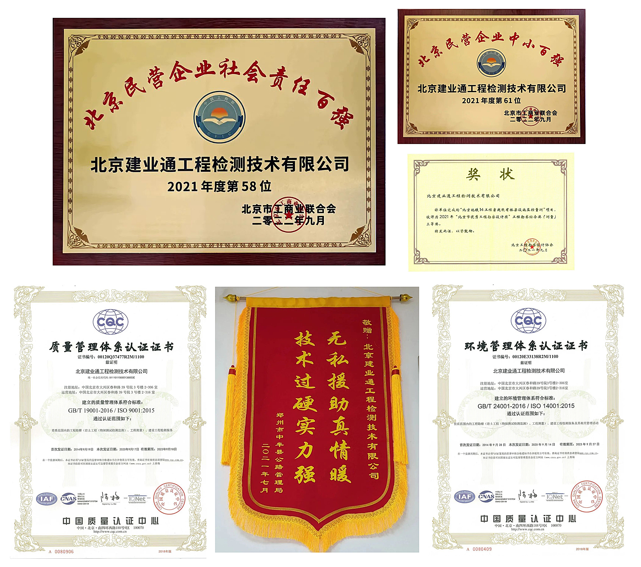 同時(shí),憑借較高的行業(yè)專注度、豐富的科技創(chuàng)新成果、穩(wěn)扎穩(wěn)打的科研能力以及積極履行社會(huì)責(zé)任,北京建業(yè)通在企業(yè)高質(zhì)量發(fā)展方面也取得了諸多成績,榮獲了"北京民營企業(yè)中小百強(qiáng)""北京民營企業(yè)社會(huì)責(zé)任百強(qiáng)""北京市共鑄誠信企業(yè)"等榮譽(yù),連續(xù)多年被評(píng)為北京市軌道交通工程質(zhì)量檢測履約先進(jìn)單位、連續(xù)多年獲得北京市城市道路養(yǎng)護(hù)管理中心第三方監(jiān)測單位評(píng)比第一名的好成績。