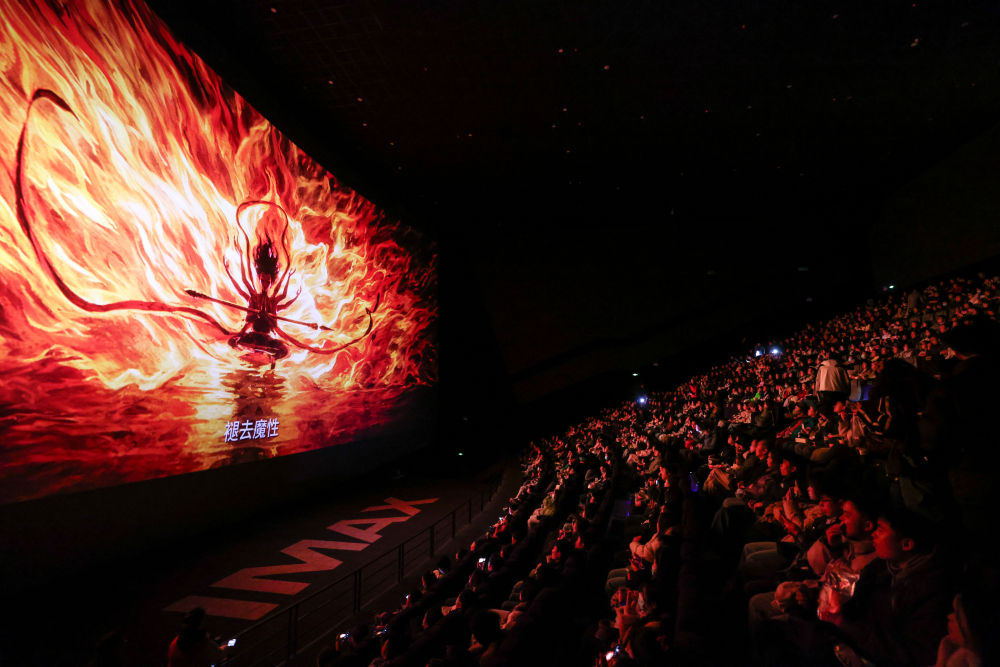 2025年2月25日,觀眾在貴州省貴陽越界影城IMAX影廳內(nèi)觀看電影《哪吒2》。新華社記者 歐東衢 攝