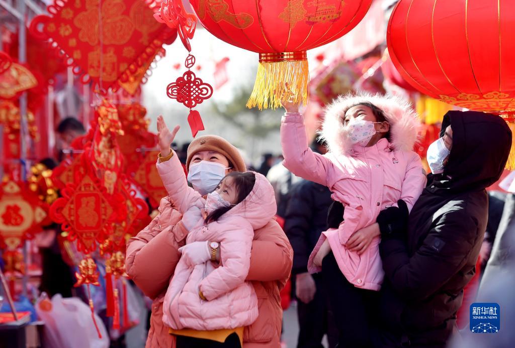 1月18日,人們?cè)诤颖笔∈仪f市正定縣的年貨大集上購置紅燈籠等新年飾品。新華社發(fā)(張曉峰 攝)